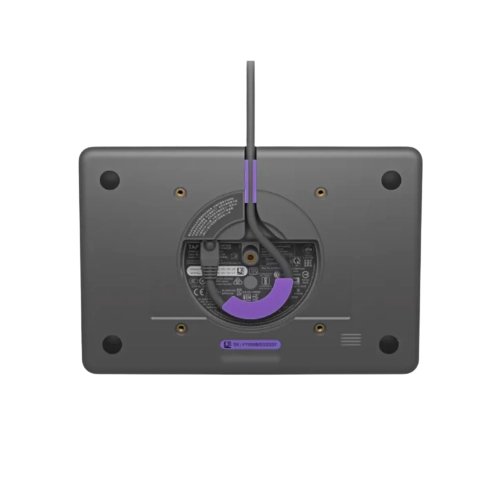 Mantenha a estética corporativa impecável. O Tap IP possui um design de perfil baixo na cor grafite que se integra perfeitamente a escritórios modernos. Seu sistema inteligente de retenção de cabos e alívio de tensão oculta as conexões dentro do chassi, garantindo que não haja fios soltos ou desconexões acidentais. O dispositivo pode ser instalado de forma plana na mesa ou montado com acessórios opcionais (suportes de elevação ou parede) para melhor ergonomia e visualização.